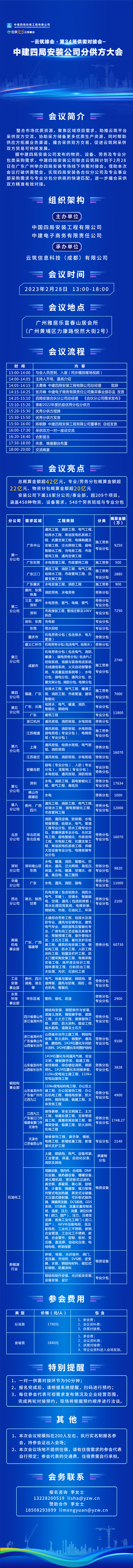 云筑網整合市場優質資源,聚焦區域項目需求,助推云筑平臺采供雙方交流,協助采方儲備更多優質生產資源,幫助供方宣傳自身品牌及產品形象,促進云筑采供雙方貿易可持續發展。據中建四局安裝即將進行物資、設備、勞務及專業分包類采購需求,計劃于 2 月在廣東廣州舉辦四局安裝專場線下供需對接會,借助本次會議打破供需壁壘,實現四局安裝各合伙分公司及專業事業部采購需求與專業分包分供商的快速匹配,進一步撮合采供雙方精準有效對接。紅圈在此預祝本次大會圓滿成功!