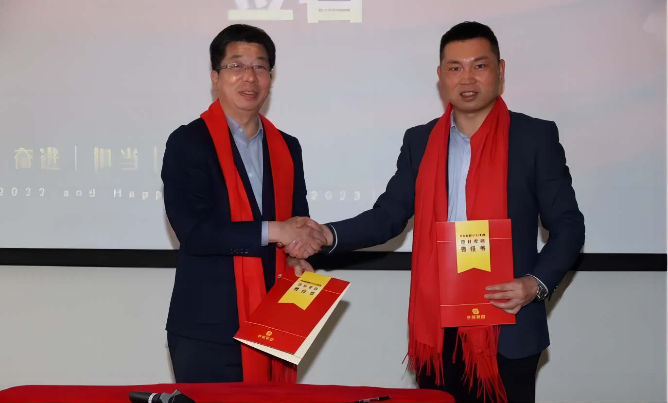 王斌董事長和陳拓總經理現場簽署《2023年目標考核責任書》