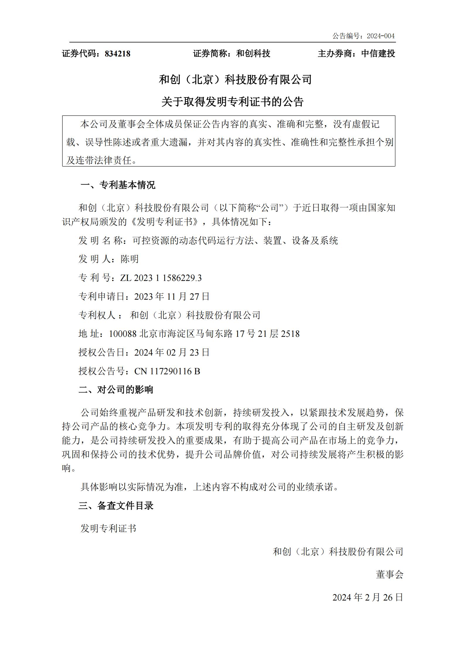 創新驅動,不斷突破!恭喜和創科技再添一項新的發明專利!