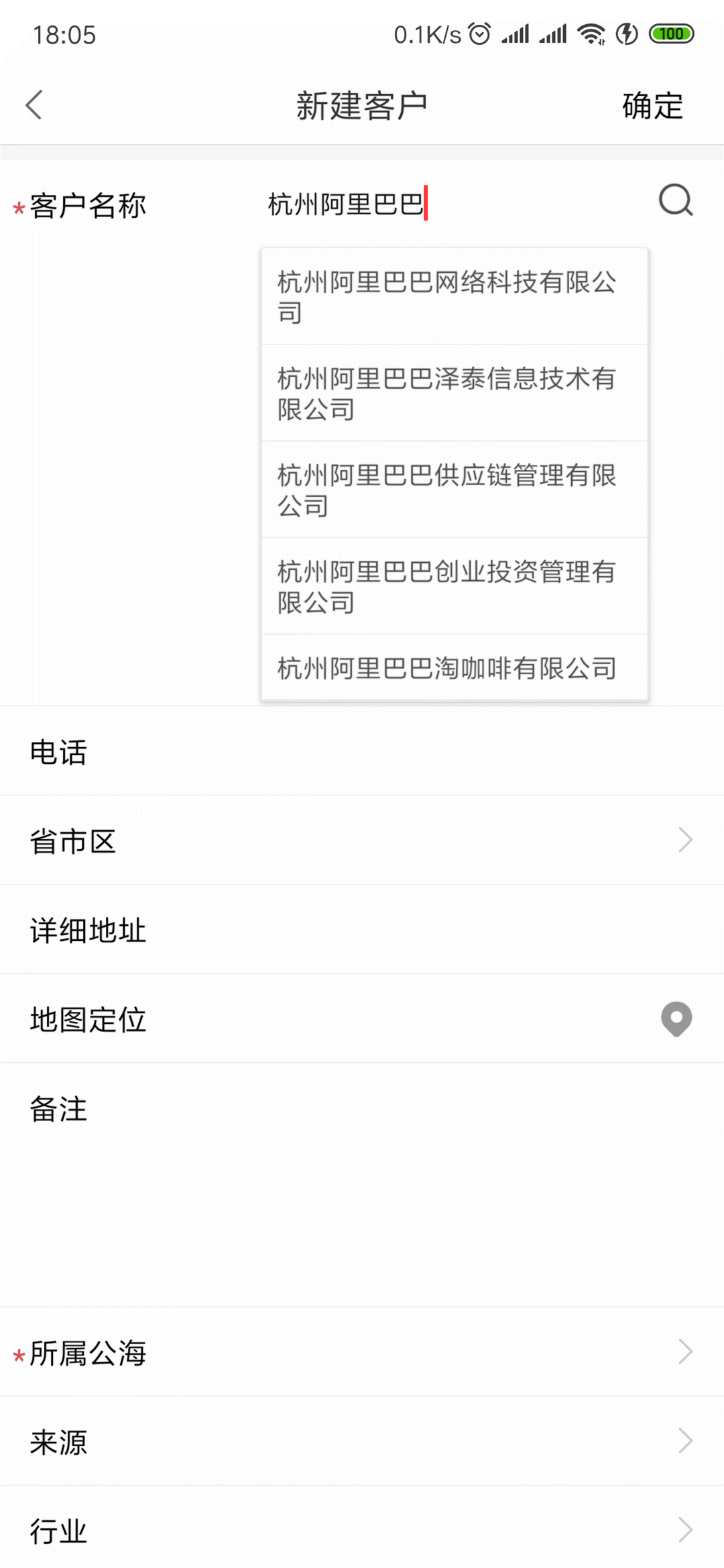 如輸入關鍵字“杭州阿里巴巴”后,系統將在下拉選項框中顯示抓取到的所有包含“杭州阿里巴巴”關鍵字的企業名稱,選擇相應的企業名稱后,該企業的地址、注冊資本、法人等工商信息將全部呈現出來,銷售人員只需點擊“回填”,該企業的工商信息就能自動填充到系統中。此項功能將大大提高銷售線索/客戶信息創建的效率,并保證數據的準確性,很好地解決銷售撞單、搶單等問題。
