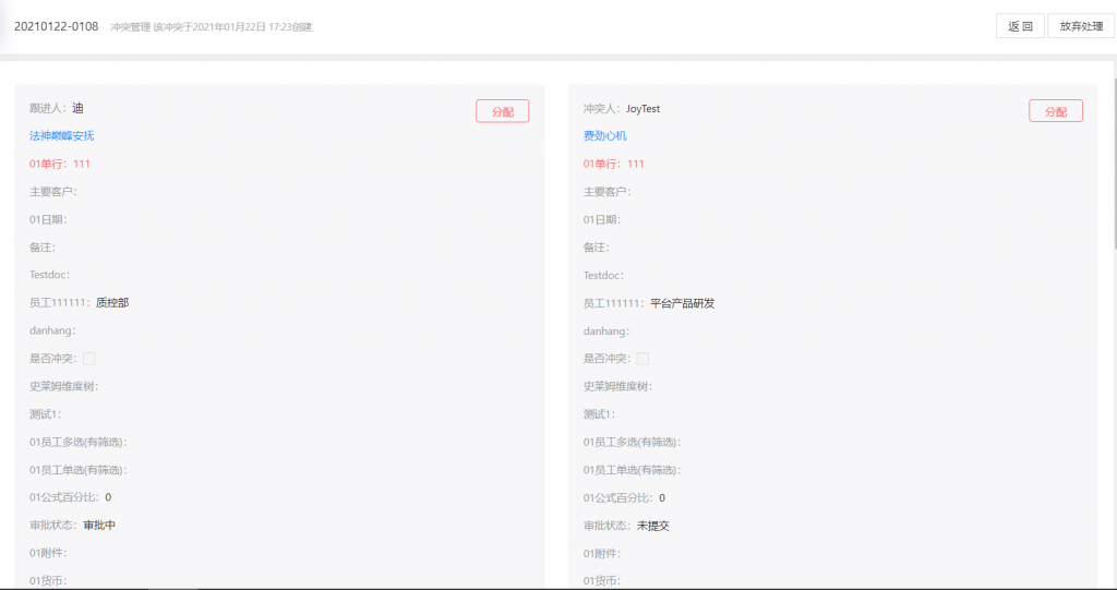 前臺進入沖突管理菜單,進入待處理,選擇相應沖突進行處理