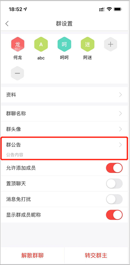 2)支持設置和發送群公告