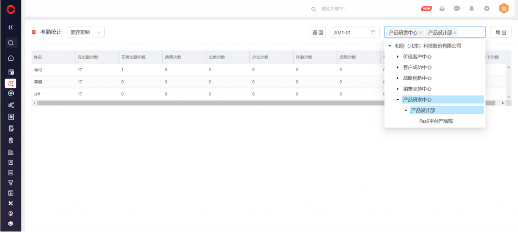 1)web端,考勤統計儀表板,篩選部門支持多選