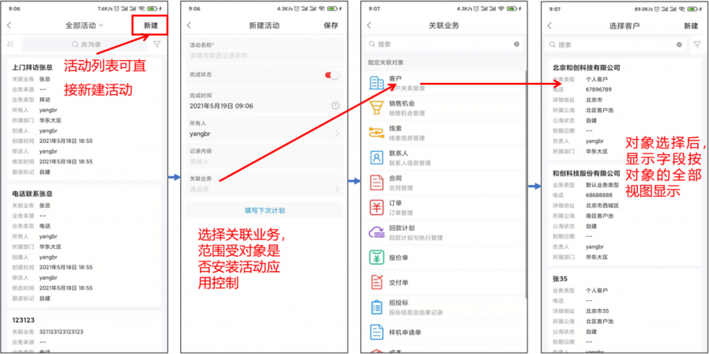 APP端活動列表可以在列表頁直接新建,完成活動時可快速填寫“下次計劃”