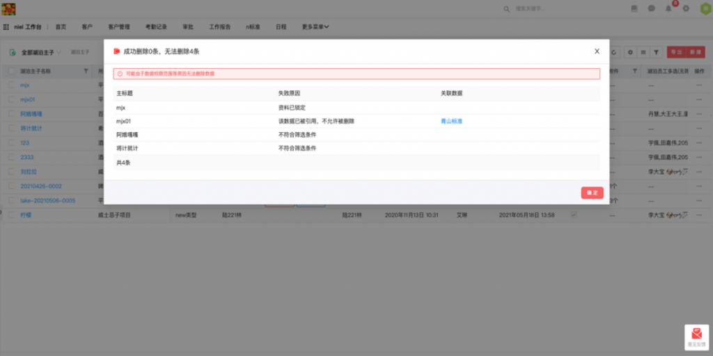 - 批量執行后返回結果:批量按鈕(如批量分配/批量刪除/自定義按鈕)的篩選條件不影響按鈕是否顯示,而是批量執行后返回結果