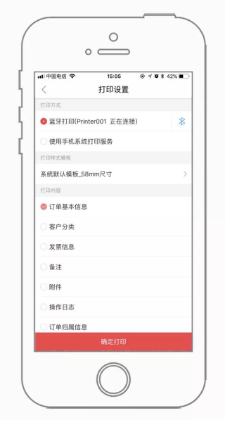 -訂/退單、出入庫單、調撥單、成本調整入庫單、采購訂退單等均支持標準模板打印自定義信息,其中訂單支持藍牙打印
