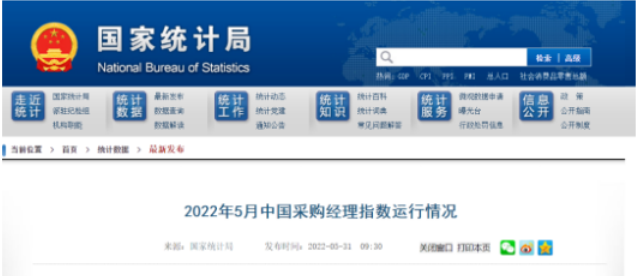 近日,國家統計局發布2022年5月中國采購經理指數運行情況。
