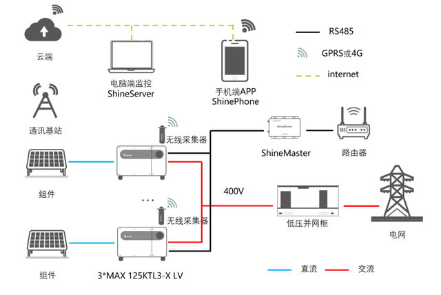 工商業電站分為低壓(400V)并網和高壓(10kV)并網,原則上低壓并網電站400kW為一個并網點,一般會有多個并網點。中高壓并網的一般在6MW以內設置一個并網點,還需要選擇升壓變壓器,變壓器功率多選擇為1250/1600/2500kVA等類型,具體看項目容量和分布。工商業電站的接入方式和并網類型需要供電公司出具接入意見,以供電公司接入評審為準進行電站并網接入設計。