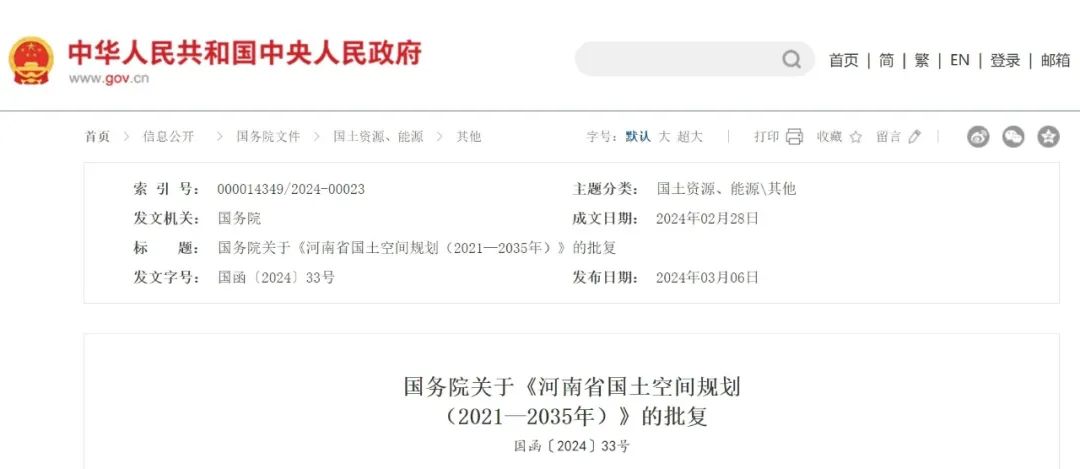 近日,國務院發布關于《河南省國土空間規劃(2021—2035年)》的批復。
