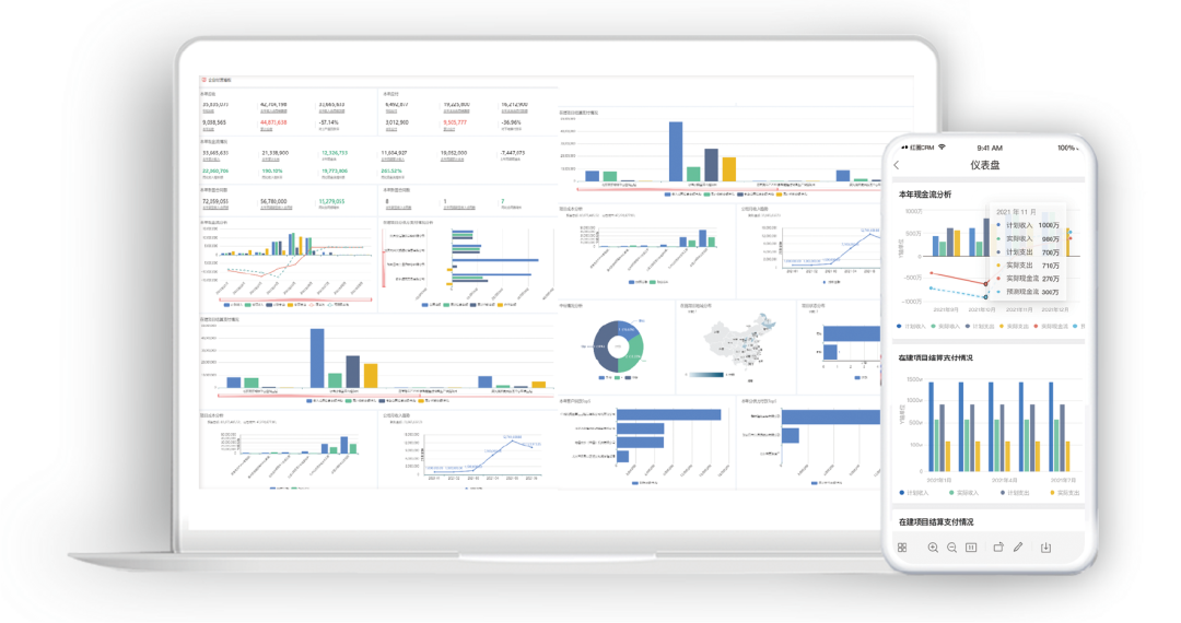 ● 紅圈系統(tǒng)自動生成動態(tài)利潤金額、合同金額、回款金額、開票金額、支付金額、成本分析等可視化報表,管理層可實時調(diào)取數(shù)據(jù),快速查看每個項目的經(jīng)營情況,真正幫助管理層做到“一鍵洞察全局”,心中有數(shù)!